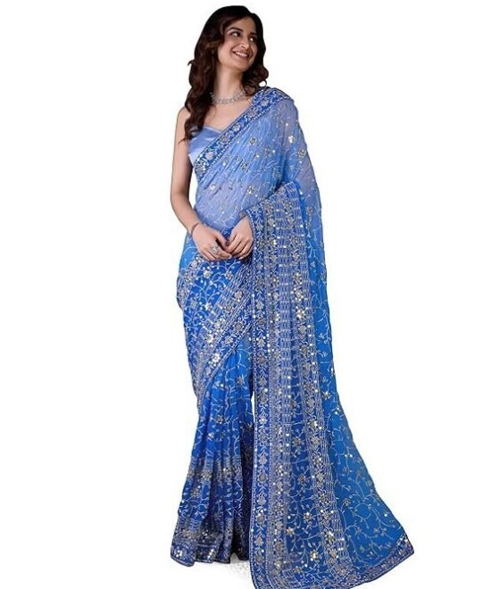 Women’s Georgette Sequin Embroidery work Saree with Unstitch Blouse Piece