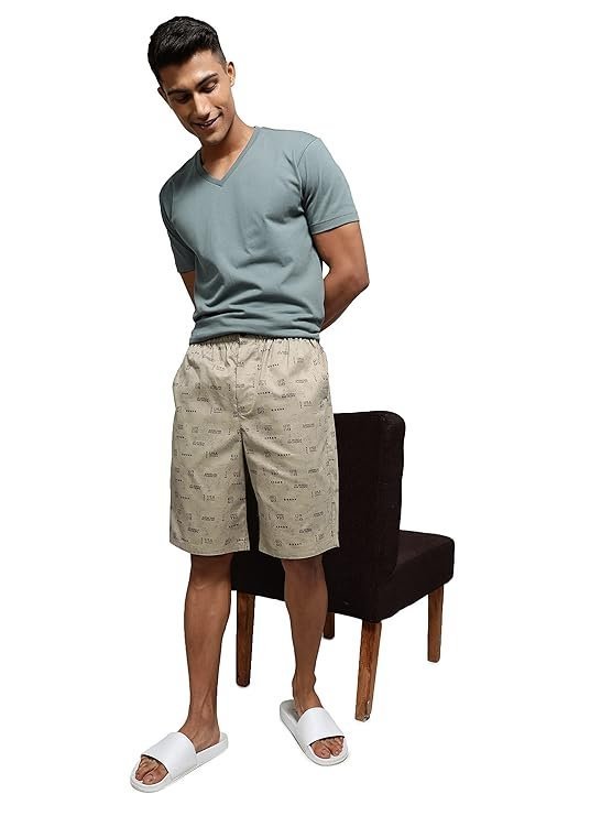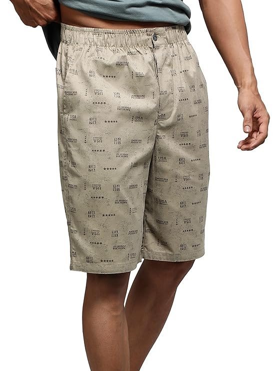 Jockey Men’s Super Combed Mercerized Cotton Woven Fabric Regular Fit Printed Bermuda with Side Pockets