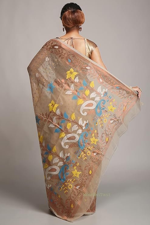 Tant women’s Soft cotton silk dhakai jamdani saree without blouse piece
