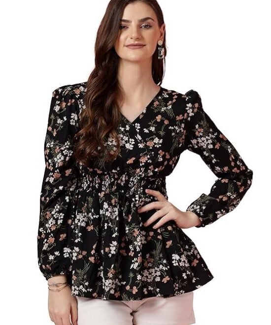 Sheetal Associates Women’s Casual Puff Sleeves Floral Print Peplum Top